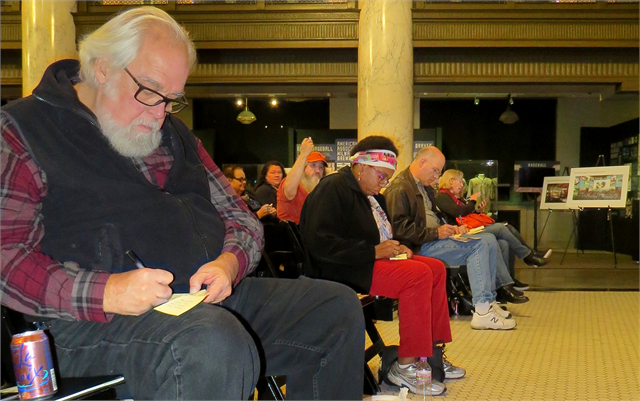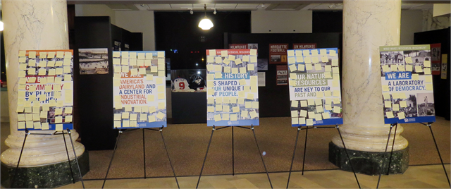 Using Post-It notes, Milwaukee guests share ideas about the stories of their area that could be used in a new Wisconsin history museum.
