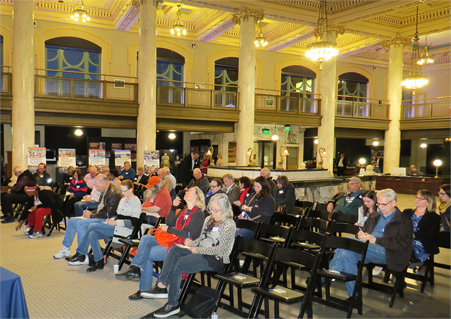 “This is a really special time for us because we’re building a new museum for Wisconsin – not just a bricks and mortar project in Madison, but a museum that connects to citizens here in Milwaukee and around the state,” Society Director Christian Øverland told the audience at the Milwaukee County Historical Center, a former bank building that now serves as the headquarters for the Milwaukee County Historical Society. “This is the people’s museum, your museum, and we want to hear from you.”