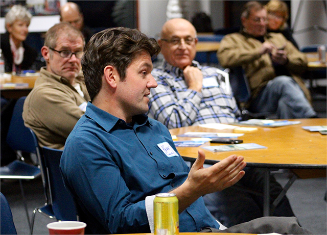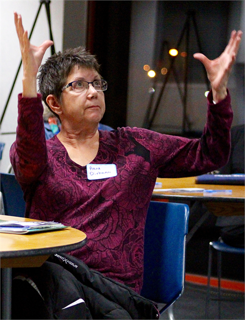 After stickers were placed, Goehring led a discussion asking people to share their thoughts on certain renderings.