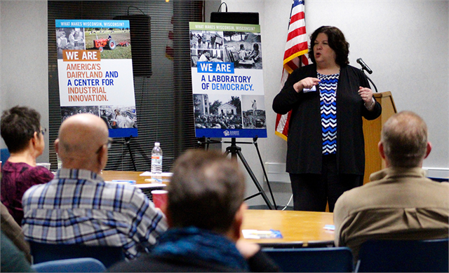 Goehring introduced the project with a video that highlighted the new museum’s overall storytelling theme “What Makes Wisconsin, Wisconsin?” She then engaged guests in workshop-type activities during which they shared topics of local importance and participated in a discussion about their most memorable museum experiences.