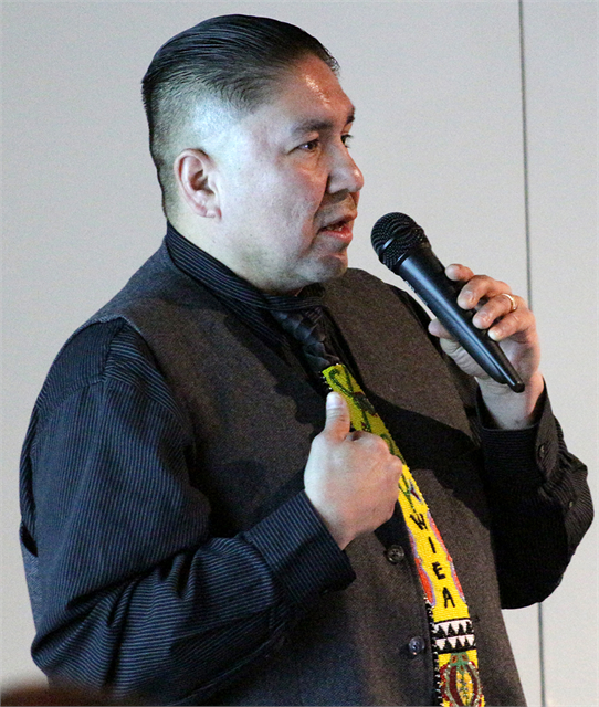 Rebecca Comfort, the Society’s American Indian Nation Liaison and a member of the Keweenaw Bay Indian Community band of Lake Superior Ojibwe, greeted guests briefly, adding “miigwech” (Ojibwe for “thank you”), before introducing Brian Jackson, WIEA President, who spoke on behalf of the organization co-hosting the event.