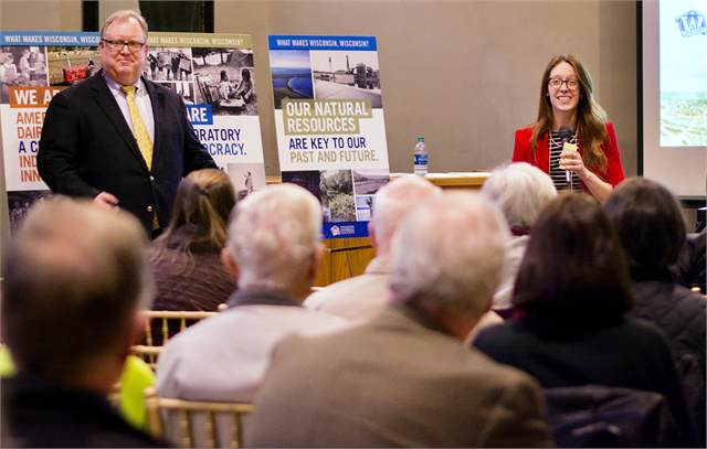 Byrd then introduced Christian Øverland, the Ruth and Hartley Barker Director of the Wisconsin Historical Society. Øverland shared details about the new museum project and expressed the importance of gathering the attendees’ feedback about what the new museum should be like.