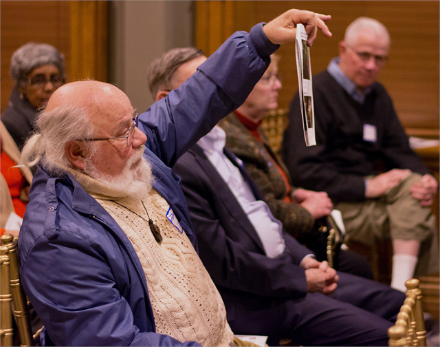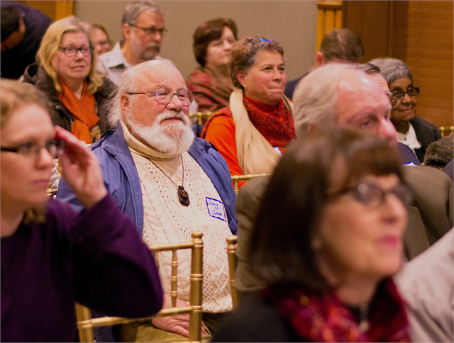 David Drake and other guests listen during a discussion at the Wisconsin Historical Society’s “Share Your Voice” new museum public listening session March 13, 2019 at the Waukesha County Historical Society & Museum inside the newly renovated 1893 Waukesha Historic Courthouse.