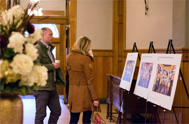 Guests examine early concept exhibit design renderings prior to the Wisconsin Historical Society’s “Share Your Voice” new museum listening session held March 13, 2019 at the Waukesha Historic Courthouse, now home of the Waukesha County Historical Society & Museum.