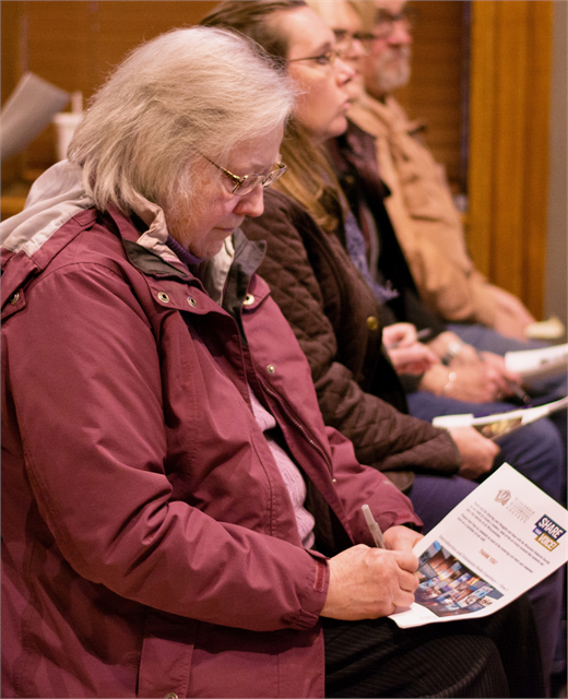 A guest shares her thoughts during a discussion at the Society's March 13, 2019 "Share Your Voice" new museum public listening session in Waukesha.
