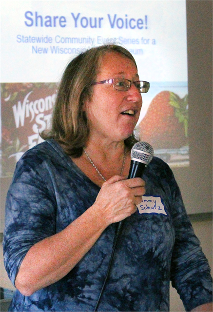 The listening session was then formally kicked off by Alicia Goehring, Director of Special Projects and Interim Director of Programs and Outreach for the Wisconsin Historical Society. The session was one of more than 40 the Society is holding across the state to offer residents a chance to share ideas and provide feedback on preliminary concept exhibit design renderings for a new $120 million Wisconsin history museum that it plans to build on the state’s Capitol Square. The new museum is slated to open by 2024 or 2025 and will replace the current aging and undersized Wisconsin Historical Museum in Madison.