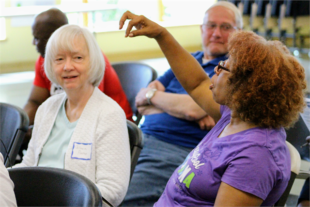 Guests filled a sunny multipurpose room at the Badger Rock Neighborhood Center, located just south of the Beltline near the intersection of Badger Road and Rimrock Road on Madison’s South Side.
