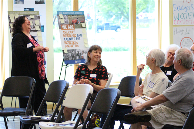 Goehring then began the first activity by asking the group to write on Post-It notes what it was about their community that helped make Wisconsin, Wisconsin. That followed with a discussion of some of the suggestions.