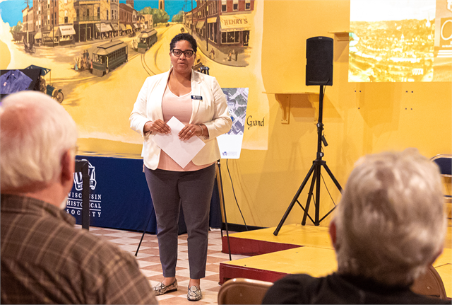 Washburn welcomed guests to her facility and talked about its upcoming programs and membership opportunities before introducing Christian Øverland, the Ruth & Hartley Barker Director of the Wisconsin Historical Society, who facilitated the listening session.
