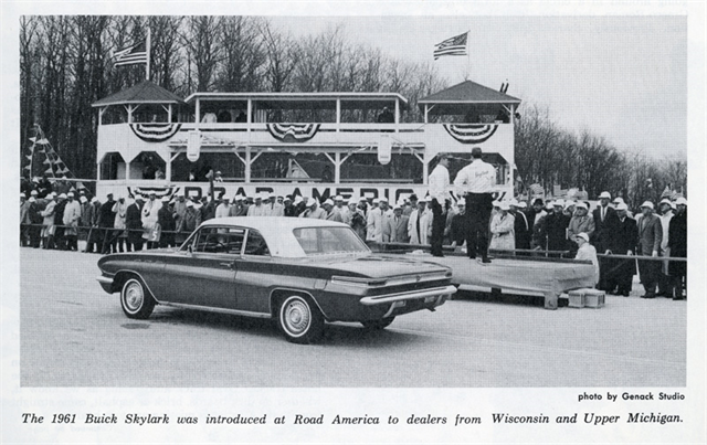 Beginning in the 1960s, the track became an important venue for automaker, dealer, and journalist communities. Influential GM vice presidents Harley Earl and Bill Mitchell brought cars to demonstrate at the track. For example, when the 1962 Buick Skylark was introduced, dealers and sales teams from Wisconsin and upper Michigan were invited to learn about, and test drive the Skylark as well as Buick’s other new models. Buick spokesman Nelson Case Jr., in a promotional film for car salesmen, described the appeal of Road America. He stated: