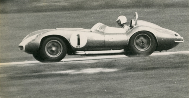 Wisconsin’s own Augie Pabst won a thrilling battle at the 1960 June Sprints in his Scarab sports racer. Photo courtesy of Road America Archives.