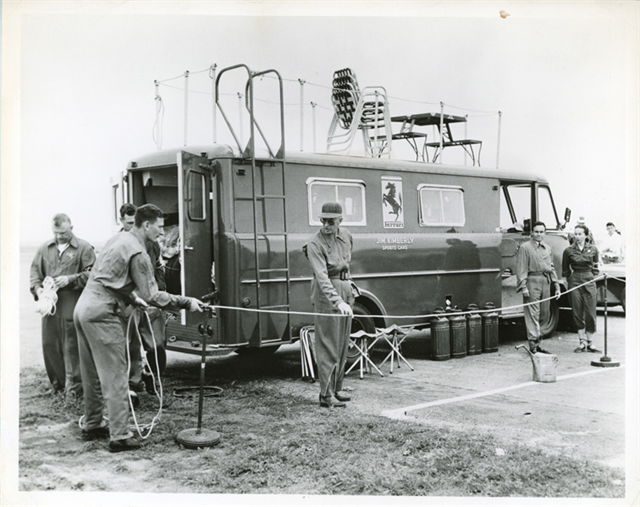 “The first to go big time.” Jim Kimberly and his race team set up in the paddock during 1956 June Sprints.
