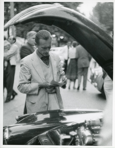 A judge scores a show car during Concourse d’Elegance on Lake Street in Elkhart Lake during 1956 June Sprints.