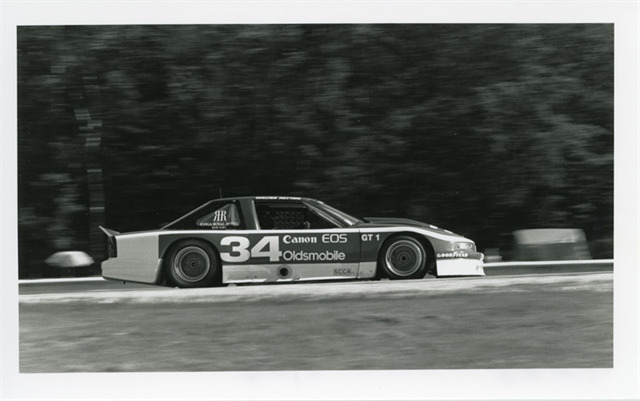 Walter Payton drives to his first victory at Road America, winning the GT-1 race at the 1990 June Sprints in an Oldsmobile Cutlass.