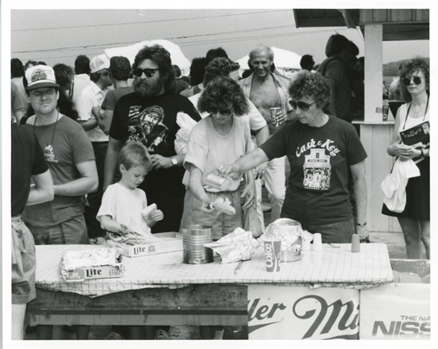 Fans enjoy corn on the cob during the 1987 IMSA 500 at Road America. Photo by Russ Lake. Courtesy of Road America Archives.